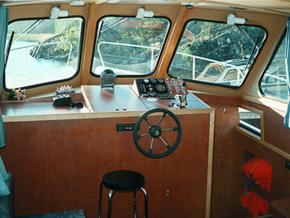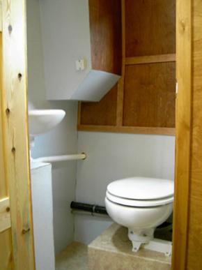 vorne: Kabine mit Doppelbett (1,40 x 2,05m) und Einzelbett (0,75 x 2,05m)