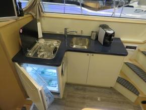 komplett ausgestattete Küche mit mehrflammigen Kochfeld/Backofen, Toaster und