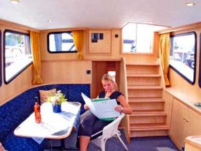 hinten : Kabiine mit Doppelbett ( 2,00 x 1,30 m ) und Einzelbett ( 2,00 x 0,55